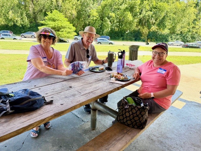 Waldo-Brookside Rotarians joined 19 Club 13 Rotarians & guests for a picnic and yard games event Sunday afternoon. Club Presidents Jared Campbell and Bill Quatman along with Kara Bennett & Peter Ho (Club 13) and Liz Holt & James Arcano (Waldo-Brookside) organized the event. The weather was spectacular, food was tasty and plentiful, and the games were fun. A highlight of the activities was the opportunity to tie-dye a T-shirt. Rotarian James Arcano (Kansas City Bier Company) provided the supplies and offered advice on the finer points of tie-dying. Who could have known that there were so many creative Rotarians! It was suggested that there be a follow up event with everyone wearing their tie-dye T-shirt.