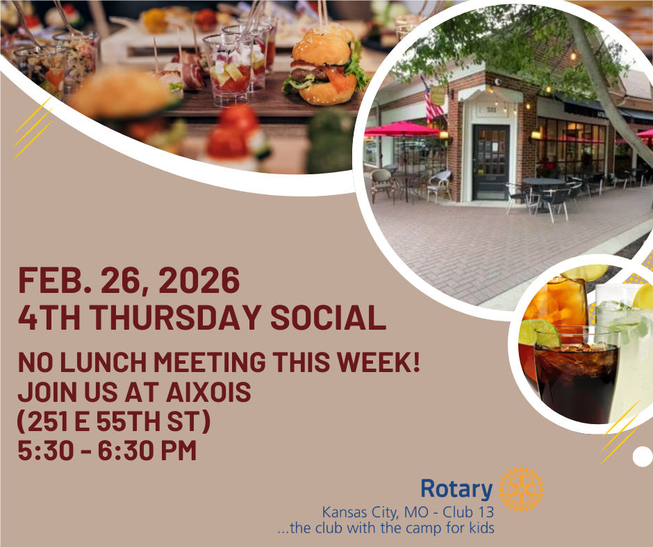 DISTRICT CONFERENCE April 24 & 25 to be held at our Rotary Youth Camp with a special concert on April 24th ! We had two flyers on our tables, one for the District Conference, starting Friday night and continuing Saturday morning. One District - One Weekend – One Powerful Impact. Saturday’s Grand Finale will be the 25th Anniversary Shoes for Orphan Souls’ Shoe Roll Call. This will feature future Rotary International President, Larry Lunsford, of the KCMO – Plaza Club. The other flyer highlighted Friday (4/24/26) night’s “Jukebox Heroes - Tribute to the 60’s-80’s” entertainment with Kansas City’s very own Rock Orchestra. This event’s location will be 1901 NW Blue Parkway, Lee’s Summit, MO 64065 (at Unity Village) beginning at 7pm with the doors opening at 6 pm.